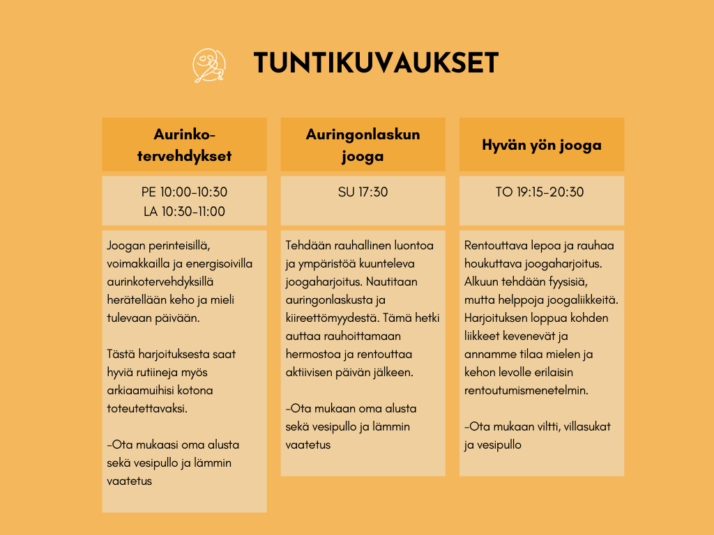 - Huoltaa kehoasi ja mieltäsi joogatunneilla ja rentoutumalla.